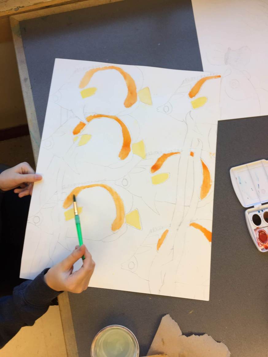 Watercolor and Crayon Resist Fish Paintings