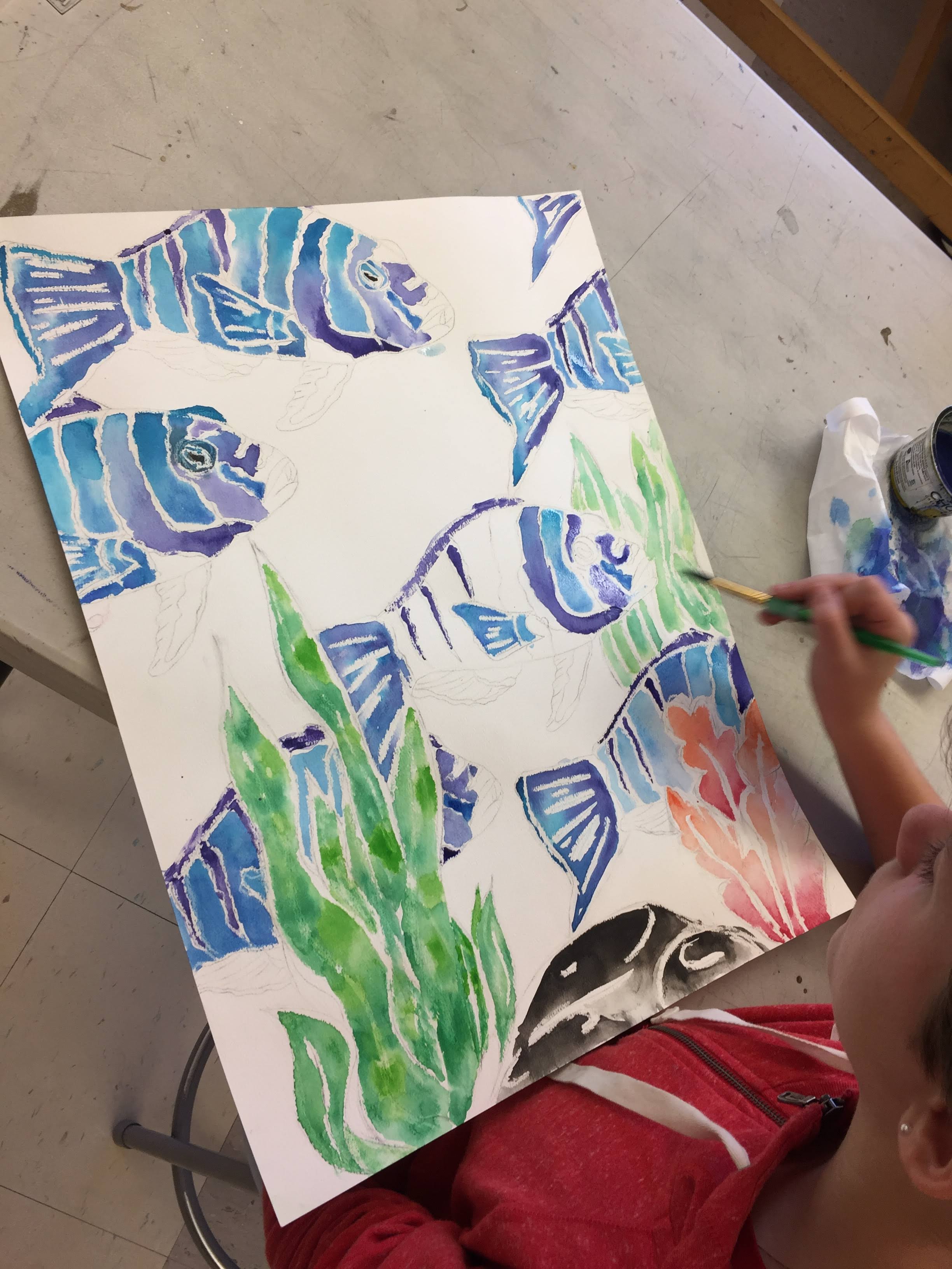 Watercolor and Crayon Resist Fish Paintings