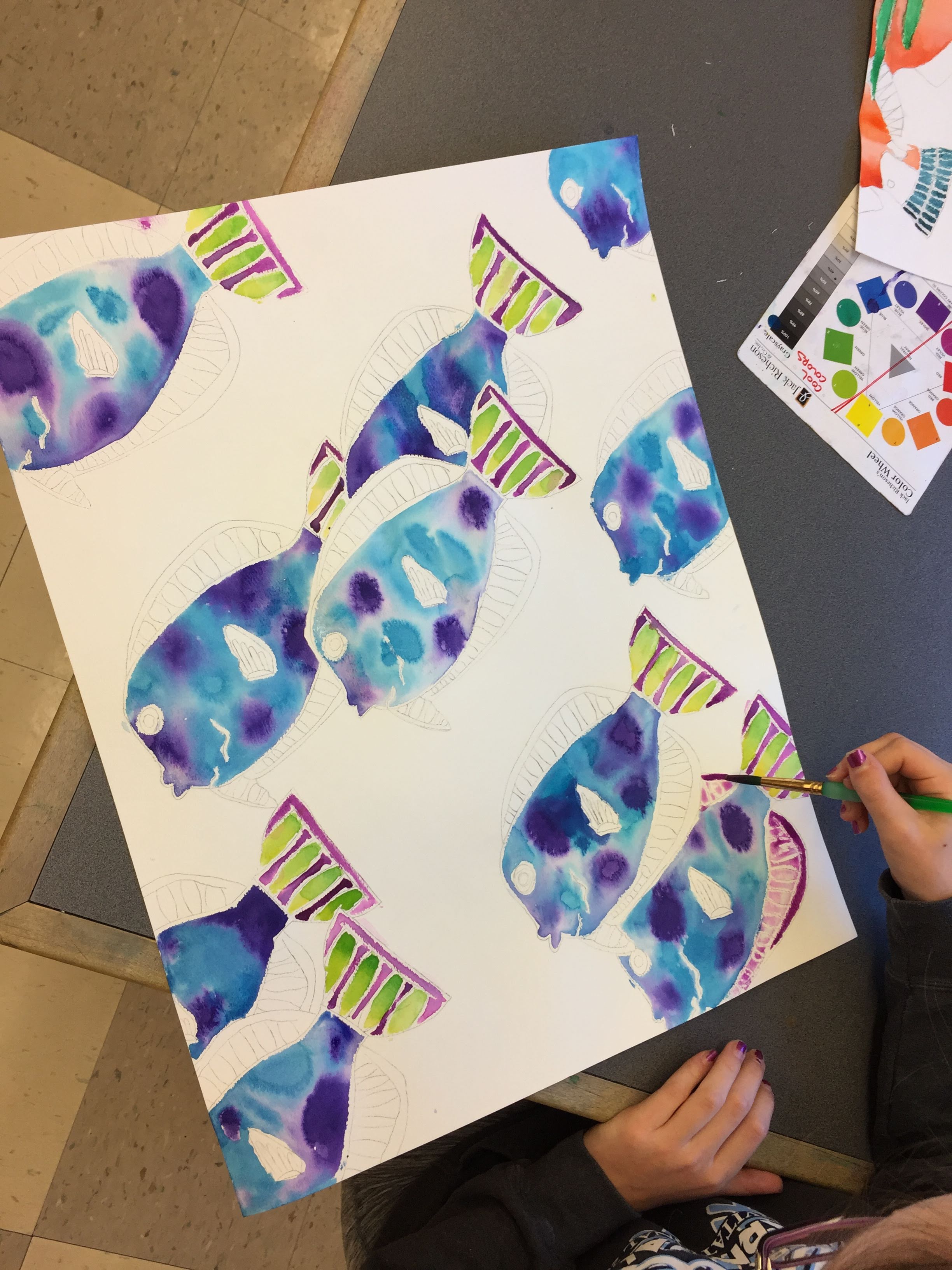 Watercolor and Crayon Resist Fish Paintings