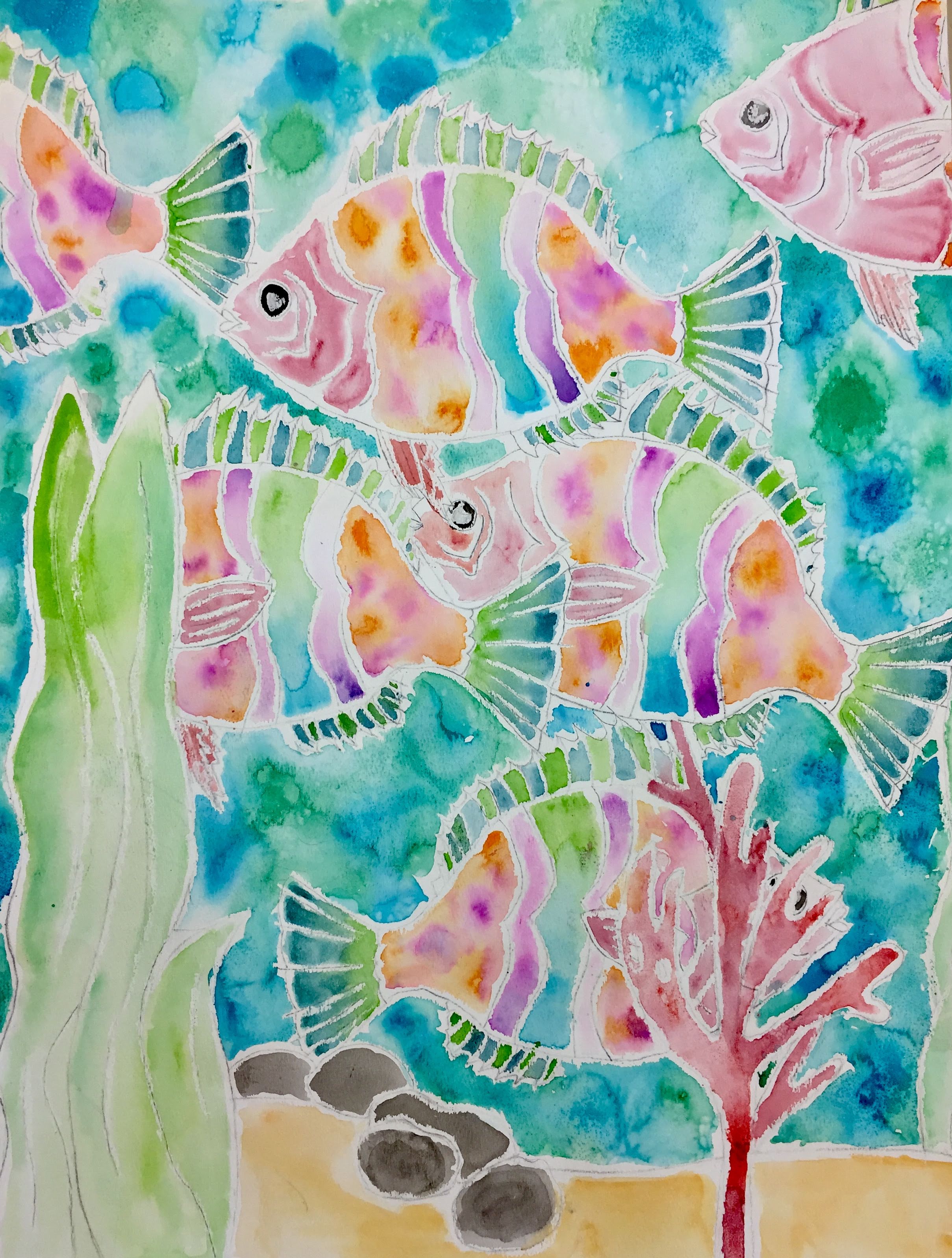 Watercolor and Crayon Resist Fish Paintings