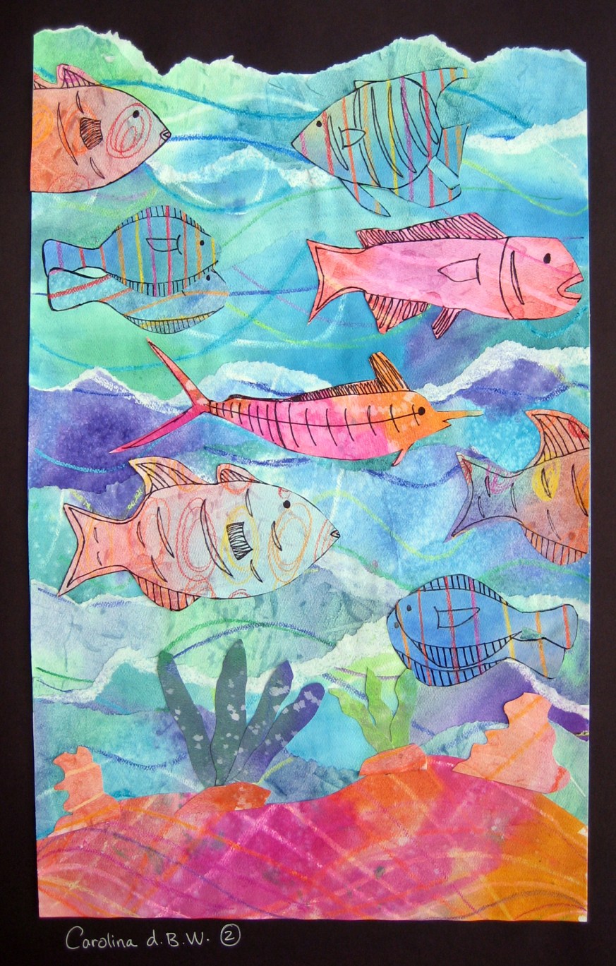 Watercolor and Crayon Resist Fish Paintings