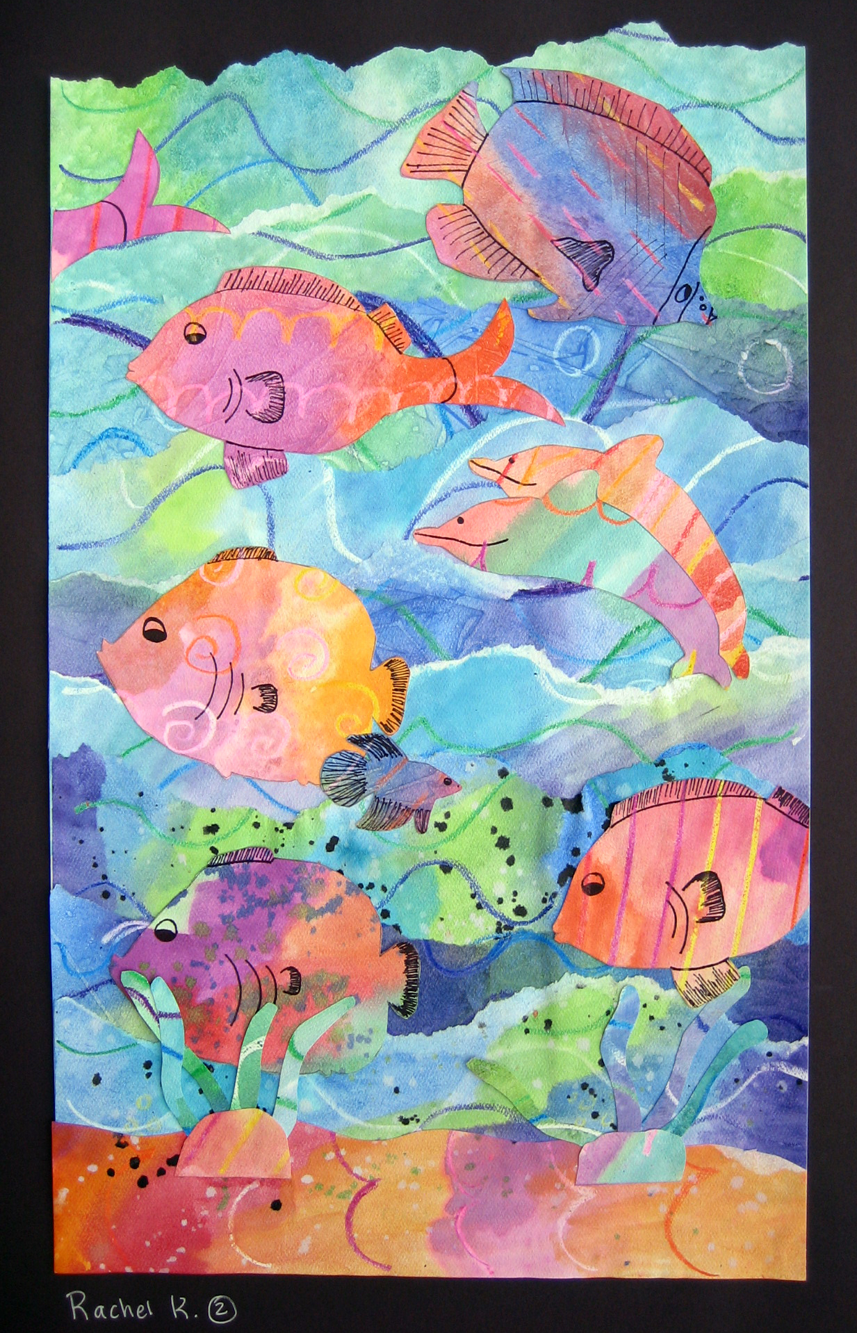 Watercolor and Crayon Resist Fish Paintings