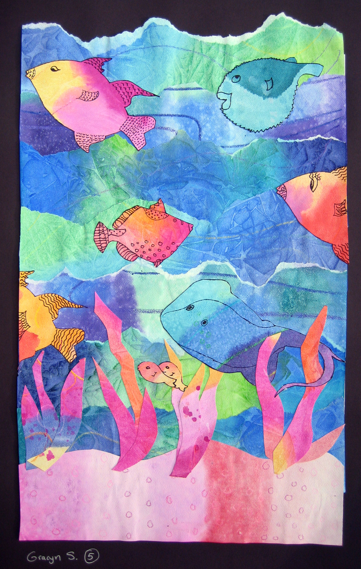 Watercolor and Crayon Resist Fish Paintings
